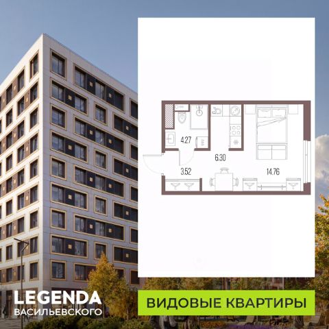 Просторная 1-комн. квартира-студия с предчистовой отделкой в ЖК "LEGENDA Васильевского" на 6 этаже. Общая площадь: 28.39 кв.м., площадь гостиной 21.52 кв.м., из которых 5 кв.м. выделено под кухонную зону. Все окна выходят на одну сторону. В квартире один совмещенный санузел. Высота потолков 2.72 м. "LEGENDA Васильевского" жилой квартал в минутной доступности от Финского залива, главного креативного хаба Санкт-Петербурга Севкабель Порта и других точек притяжения. Современные инженерные и технические решения, повышающие качество жизни TechnoBox включают в себя: стационарный и удаленный контроль дома, систему вентиляции Air Design - здоровое дыхание без лишнего шума, мультисервисную сеть, объединяющую коммуникационные системы, удаленное управление электроприборами, контроль отопления в каждом помещении, поддерживающий оптимальный температурный баланс во время "холодного" периода", датчики протечки, датчик открытия входной двери. Мультисервисная сеть (МСС) объединяет ключевые слаботочные системы дома, задавая им единый высокий стандарт работы, обеспечивая надёжность их функционирования и управления. Квартира готова к декорированию. Застройщиком сделана шумоизоляция; стены подготовлены для отделки; проведена электрика с учетом рекомендаций по расстановке мебели и бытовой техники; выровнен пол. В каждой квартире установлена взломостойкая входная дверь, окна со специальным термоизолированным алюминиевым профилем. Двор жилого комплекса "LEGENDA Васильевского" закрыт. Проект состоит из шести разноформатных корпусов с ритмичными фасадами в духе пост-конструктивизма. Геометрия жилого комплекса состоит из четко простроенных осей, чередующих открытые пространства и объемы корпусов, каждый из которых обладает своим визуальным кодом индивидуальным рисунком фасада и цветовой палитрой. Корпуса образуют периметр с общественными пространствами: площадью с кафе, магазинами и пешеходным променадом с детскими игровыми хабами, местами для спокойного отдыха и workout-зоной. На территории комплекса предусмотрены теплый подземный паркинг и два наземных 4-х этажных паркинга.