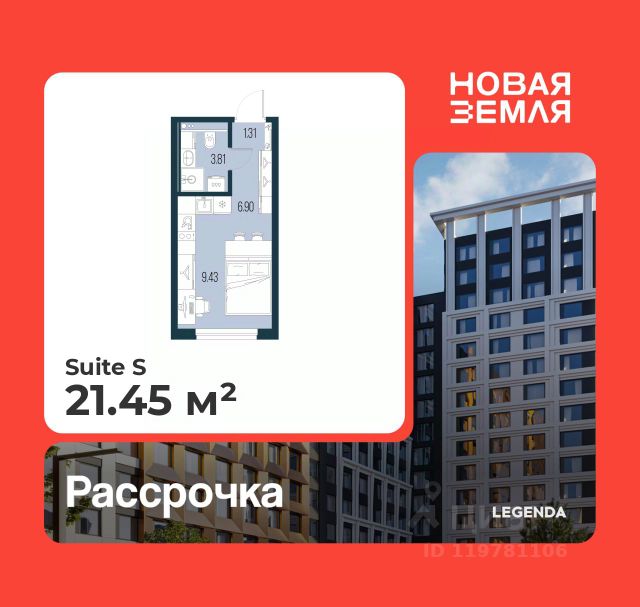 1-комн. квартира-студия с предчистовой отделкой в ЖК "Новая Земля" на 3 этаже. Общая площадь: 19.6 кв.м., площадь гостиной 13.14 кв.м., из которых 5.71 кв.м. выделено под кухонную зону. Все окна выходят на одну сторону. В квартире один совмещенный санузел. Высота потолков 2.85 м. Квартира находится в корпусе 1.8. Дом монолитный, одноподъездный, высотой 15 этажей. На этаже 8 квартир. В подъезде 2 пассажирских и 1 грузовой лифт. Окончание строительства - 4 квартал 2028 года. Оформление сделки по договору долевого участия. Новая Земля — проект LEGENDA в локации морской набережной Васильевского острова, где уже сегодня формируется многообещающее и перспективное место для жизни и инвестиций. Проект состоит из двух очередей, расположенных в непосредственной близости, но имеющих идеологически разный подход к проектированию и ассортиментному предложению. Первая очередь, где квартиры уже в продаже, наполнена компактными функциональными и эстетичными сьютами в комплектации TechnoBox, подходящими для активной аудитории, предпочитающей больше времени проводить в городе. Транспортная доступность обеспечена благодаря близости выезда на ЗСД, который позволяет быстро добраться как до центра города, так и до других районов Санкт-Петербурга. Архитектурная концепция проекта задает новый стандарт для этой локации. Дизайн фасадов, большие окна без импостов, современные инженерные решения — всё это создаёт атмосферу комфортного и эстетичного пространства, отвечающего самым высоким требованиям. В проекте представлена новая линейка планировочных решений, созданных по принципам отельного проектирования. Сьюты от LEGENDA — это уникальная работа с пространством, сочетающая сверхфункциональность и удобство, чистоту линий и стилистический минимализм. Планировочные решения в рамках первой очереди проекта будут поделены на несколько сегментов, отличающихся размерами, функциональной наполненностью и отвечающих потребностям различных жителей проекта.