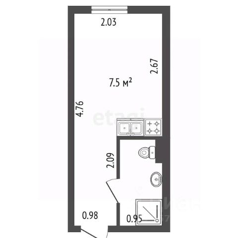 Студия с видом из окна в тихий двор, санузел совмещенный.