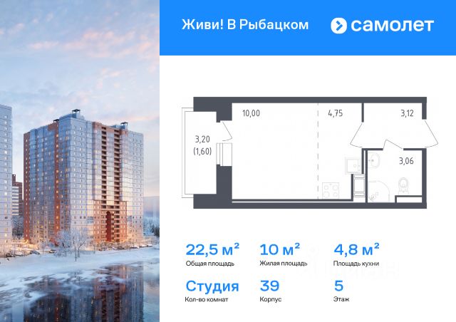 Строим кварталы для жизни с заботой о будущем. Предлагается квартира студия комфорт-класса 19,78 кв.м в корпусе 39 на 1 этаже, в ЖК "Живи! В Рыбацком" Квартира с предчистовой отделкой. Доступность дополнительных опций уточняйте у застройщика. Приобрести квартиру возможно по специальным акциям от застройщика, с текущими условиями акций можно ознакомиться в блоке "Акций". Цена динамическая и может отличаться, уточняйте актуальность у застройщика. Квартал "Живи! В Рыбацком" в Невском районе Санкт-Петербурга расположен рядом с рекой Славянкой и парком. Всего 20 минут пешей прогулки — и вы у метро "Рыбацкое". Автомобилисты будут добираться до КАДа за десять минут. В квартале работают два детских сада, школа и кабинет врача. На первых этажах зданий открыты магазины, кафе и салоны красоты. Во дворе — зеленые бульвары, воркаут-площадка, спортивный и игровой кластеры. Для машин — подземный паркинг. Кирпично-монолитные дома с каменной облицовкой — воплощение долговечности и тепла. Есть в квартале и камерный 30-й корпус, в нем восемь этажей, 70 квартир и приватный двор-парк. В сквозных парадных — безбарьерная среда, помещения для хранения колясок и велосипедов и система видеонаблюдения.