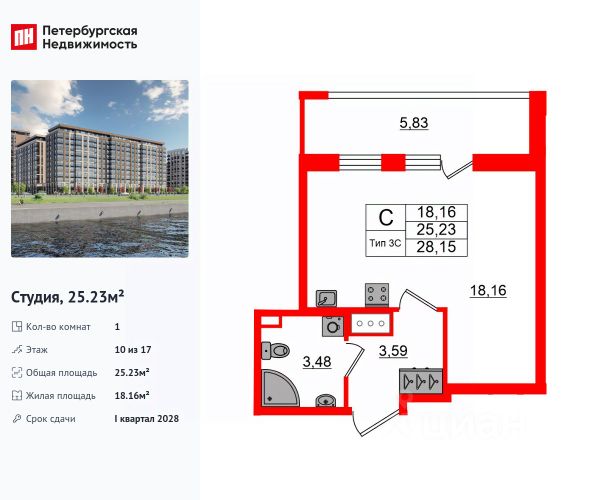 Если говорить о районе, то комплекс располагается на Октябрьской набережной Невы. Из практических плюсов можно отметить: