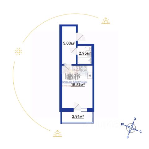 Площадь квартиры — 26 м² (лоджия 6,2 м² — дополнительно к метражу)