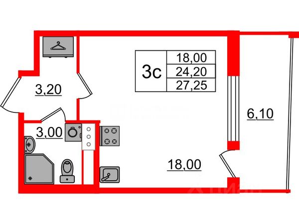 Продается просторная студия от застройщика в жилом комплексе "Бионика Заповедная" в динамичном Приморском районе. До метро можно добраться на транспорте всего за 11 минут. Уникальная, функциональная европланировка, просторная прихожая 3.65 м². Общая площадь студии - 25.6 м², жилая 18 м², высота потолка 3.97 м. Квартира продается с отделкой "NORD LINE WHITE ВК NEW". Что особенного в ЖК "Бионика Заповедная"? • Оазис в городе 3 минуты пешком до Новоорловского заказника (140 ГА) • Захватывающие виды из окон на хвойный лесопарк • Всесезонный "Заповедный парк" во дворе площадью 23000 кв.м. • 5 единых входных групп с авторским дизайном и лаундж-зонами, сити-виллы на первых этажах с палисадниками и высотой потолков до 4 м • Места притяжения: фонтан "Бионика", спортивный кластер со скейт-парком, фотозоны с арт-объектами