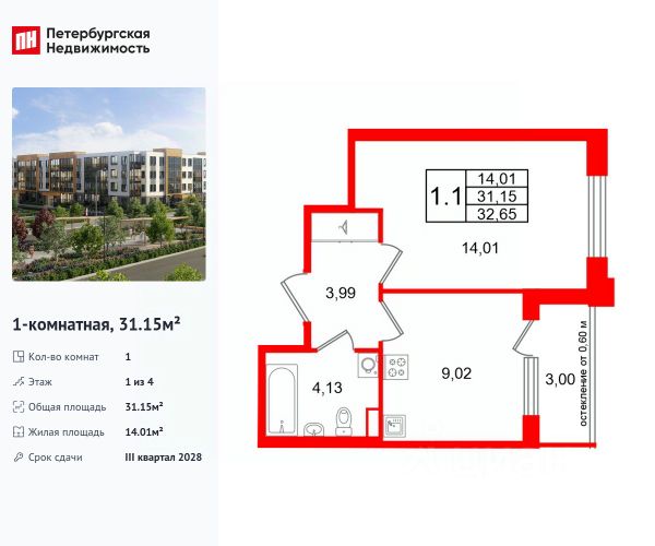 • ✅ Минимальная площадь: 24,2 м²