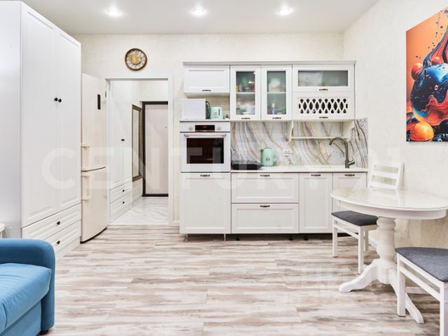 Кухня оснащена кухонным гарнитуром и техникой. Индивидуальные счетчики отопления.