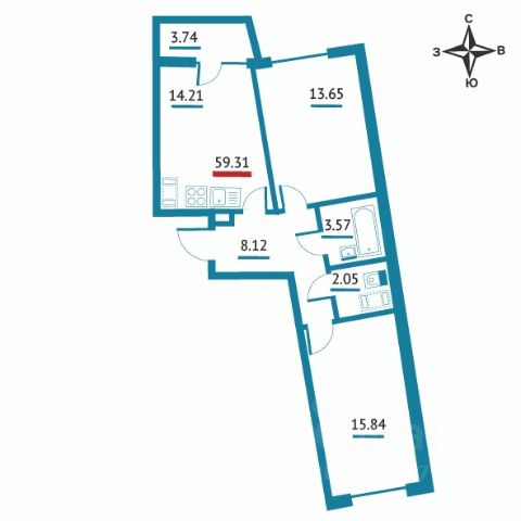 Компактная евродвушка (никто не жил). Новый высококачественный ремонт. Новая кухня с новой техникой.
