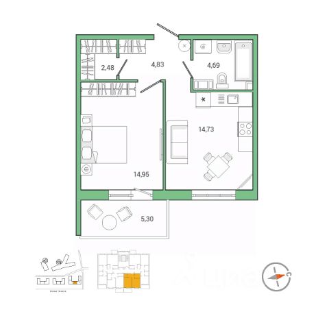 Просторные комнаты с возможностью разделения на зоны, встроенные гардеробные, евро-планировки и кухни-гостиные до 20 м2.