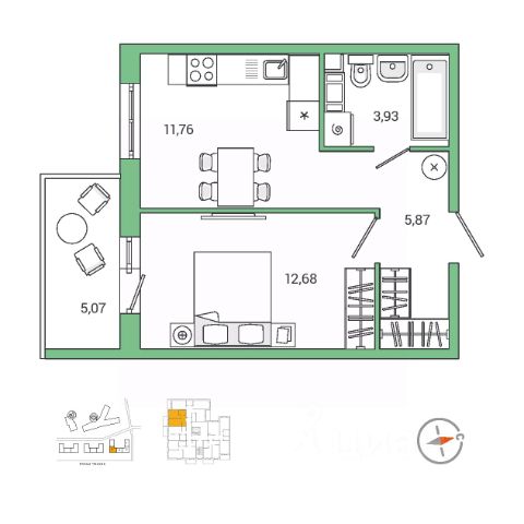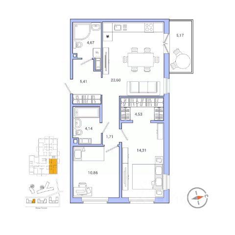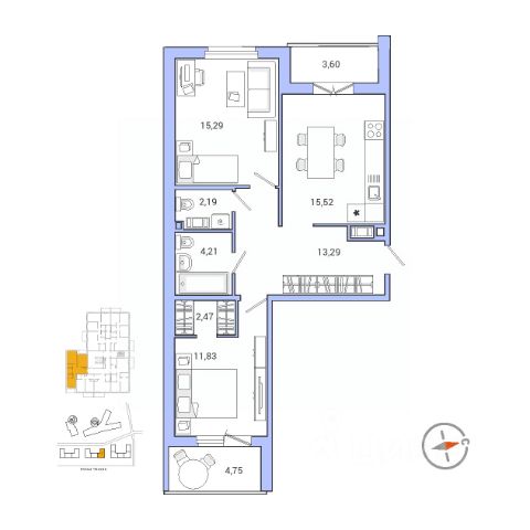 Комнаты 16,2м² + 9,5м²+8,0м² одна проходная и две изолированные. Высота потолков — 2,5 метра.