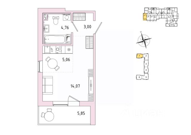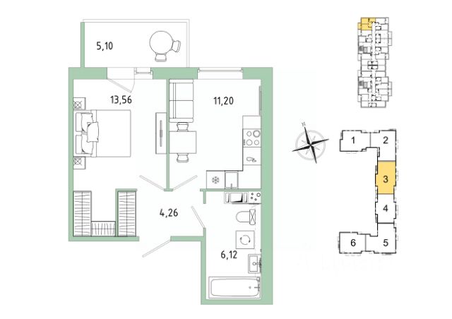 Продаётся 1-комнатная квартира в строящемся доме (Квартал 1, участок 6), срок сдачи: IV-кв. 2027, общей площадью 31.26 кв.м., на 9 этаже. Жилой комплекс "IQ Гатчина" расположен на въезде в Гатчину, неподалеку от г. Санкт-Петербурга. Расстояние до КАД - 24 км, возможен проезд на личной автомашине в центр Санкт-Петербурга по Пулковскому шоссе. Всего в 400 метрах от комплекса находится ж/д станция "Татьянино", с которой ходят электрички до Балтийского вокзала, время в пути - 50 минут. Можно добраться от метро "Московская" на маршрутном такси К100А, К11, К18.