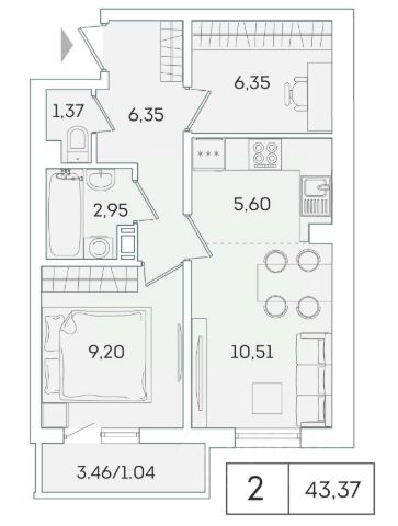 • ✅ Минимальная площадь: 38,3 м²