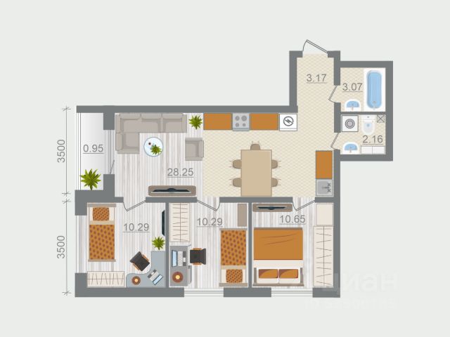 Продаётся 3-комнатная квартира в строящемся доме (Корпус 1.3), срок сдачи: II-кв. 2026, общей площадью 68.83 кв.м., на 9 этаже.