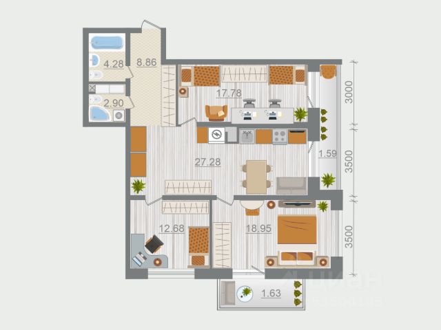 Продаётся 4-комнатная квартира в строящемся доме (Корпус 1.3), срок сдачи: II-кв. 2026, общей площадью 95.19 кв.м., на 9 этаже.