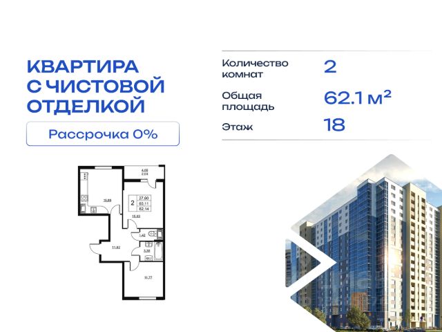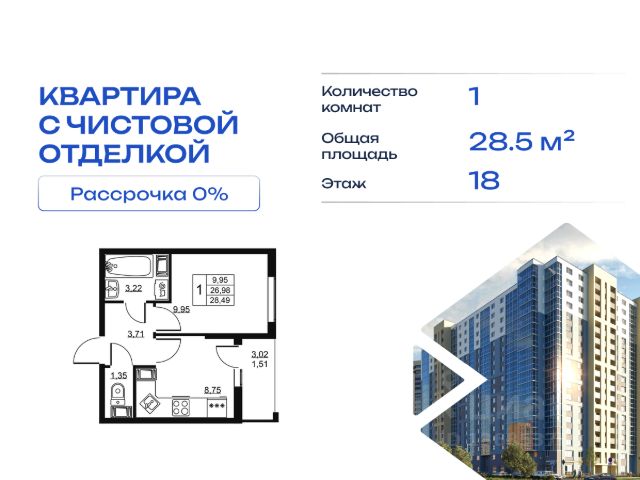 Cрок сдачи - 4 кв 2028 Продается однокомнатная квартира в жилом комплексе "Высота" от ГК СТОУН нa 18 этаже. Общaя площадь cоcтaвляeт 28.49 кв. м. Квартира с отделкой под ключ. Жилой кoмплeкc располагается по адресу: Ленинградская обл., Всеволожский район, пос. Бугры, Гаражный проезд, ул. Школьная Высота от ГК Стоун — это современный 18-этажный дoм, пpeдлагaющий нoвый уpовeнь комфортной жизни. Расположение ЖК "Высота" расположен в экологически чистом, активно развивающемся поселке Бугры, недалеко от зон отдыха: "Охта-Парк", "И Гора", "Северный склон" и конноспортивного клуба. Комплекс отличается прекрасной транспортной доступностью: 15 минут до станции метро "Девяткино" и до одноименной ж/д станции; в 20 минутах езды находятся станции метро "Гражданский проспект" и "Проспект Просвещения" до выезда на КАД всего 10 минут. Комплекс состоит из одного дома, разделенного на 7 секций. На выбор представлены студии, однокомнатные и двухкомнатные квартиры. Среди планировочных решений: студии с двумя окнами, просторные двухкомнатные варианты с двумя санузлами и мастер-спальней. Все квартиры сдаются с готовой чистовой отделкой. Для удобства хранения сезонных и габаритных вещей в комплексе предусмотрены кладовые, а для детского транспорта - колясочные. Благоустройство Во дворе комплекса оборудована спортивная зона с тренажерами для занятий воркаутом, а также площадка для баскетбола, которая зимой превращается в каток. Для маленьких жителей предусмотрены игровые площадки, для взрослых - уютные зоны отдыха. На территории будут высажены деревья и пышные кустарники. Удобство добавляют велопарковки, расположенные у парадных и во дворе, а также отдельные входы на автостоянки. Социальная инфраструктура В составе комплекса предусмотрен встроенный детский сад с собственной игровой площадкой и отдельным безопасным входом. Дошкольное учреждение рассчитано на 75 мест. Ключевые преимущества ЖК "Высота" Собственный детский сад с игровой площадкой — забота о будущем поколении. Близость к метро — экономия времени и сил. Развитая инфраструктура — всё необходимое под рукой. Каток и баскетбольное площадка — здоровье и активный образ жизни. Большой выбор планировок — квартира вашей мечты. Полная чистовая отделка в подарок — заезжай и живи! Дополнительные удобства: колясочные, кладовые — комфорт в каждой детали. Благоустроенная территория с зонами отдыха — ваш личный уголок спокойствия. Безбарьерная среда— забота о каждом.