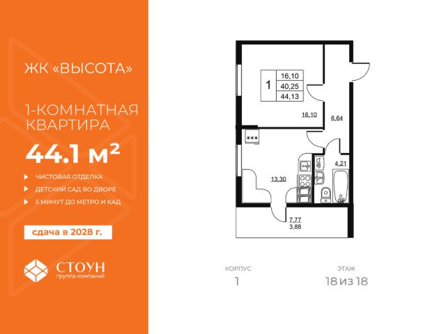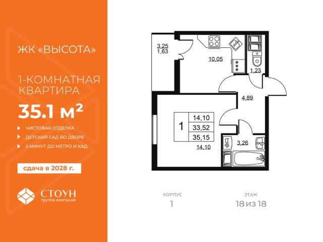 Арт. 16391991. Продается стильная 1-комнатная квартира 35,4 кв. м в ЖК комфорт-класса "UP-квартал Светлановский"