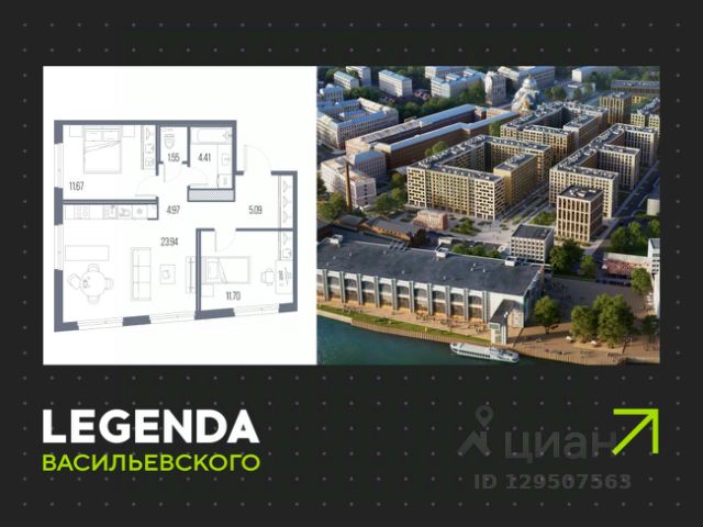 1-комн. квартира-студия с предчистовой отделкой в ЖК "LEGENDA Васильевского" на 10 этаже. Общая площадь: 28.29 кв.м., площадь гостиной 21.91 кв.м., из которых 7.34 кв.м. выделено под кухонную зону. Все окна выходят на одну сторону. В квартире один совмещенный санузел. Высота потолков 2.7 м. "LEGENDA Васильевского" жилой квартал в минутной доступности от Финского залива, главного креативного хаба Санкт-Петербурга Севкабель Порта и других точек притяжения. Современные инженерные и технические решения, повышающие качество жизни TechnoBox включают в себя: стационарный и удаленный контроль дома, систему вентиляции Air Design - здоровое дыхание без лишнего шума, мультисервисную сеть, объединяющую коммуникационные системы, удаленное управление электроприборами, контроль отопления в каждом помещении, поддерживающий оптимальный температурный баланс во время "холодного" периода", датчики протечки, датчик открытия входной двери. Мультисервисная сеть (МСС) объединяет ключевые слаботочные системы дома, задавая им единый высокий стандарт работы, обеспечивая надёжность их функционирования и управления. Квартира готова к декорированию. Застройщиком сделана шумоизоляция; стены подготовлены для отделки; проведена электрика с учетом рекомендаций по расстановке мебели и бытовой техники; выровнен пол. В каждой квартире установлена взломостойкая входная дверь, окна со специальным термоизолированным алюминиевым профилем. Двор жилого комплекса "LEGENDA Васильевского" закрыт. Проект состоит из шести разноформатных корпусов с ритмичными фасадами в духе пост-конструктивизма. Геометрия жилого комплекса состоит из четко простроенных осей, чередующих открытые пространства и объемы корпусов, каждый из которых обладает своим визуальным кодом индивидуальным рисунком фасада и цветовой палитрой. Корпуса образуют периметр с общественными пространствами: площадью с кафе, магазинами и пешеходным променадом с детскими игровыми хабами, местами для спокойного отдыха и workout-зоной. Срок сдачи 4 квартал 2027 года. На территории комплекса предусмотрены теплый подземный паркинг и два наземных 4-х этажных паркинга.