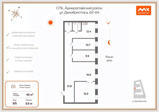Продаётся 2-комн. квартира площадью 52,5 кв.м на 9 этаже 9 этажного дома (Корпус 2.2, Секция 12) проекта ПИК Лермонтовский 54. Светлый просторный подъезд на уровне земли, функциональная планировка, большие окна, без отделки. "Лермонтовский 54" находится в центре Санкт-Петербурга на набережной Обводного канала, в 5 минутах пешком от метро "Балтийская". Здесь будут квартиры с окнами в пол, высокими потолками и террасами. Жилой квартал находится в центре Санкт-Петербурга, в Адмиралтейском районе, на набережной Обводного канала. В 5 минутах пешком - станция метро "Балтийская". До Невского проспекта на автомобиле ехать 8 минут, до Московского проспекта - всего 2 минуты. Необычные фасады "Лермонтовского 54" напоминают о промышленной архитектуре, которая была популярна в Санкт-Петербурге в конце XIX и начале XX века. Материал отделки - прочный кирпич, который прослужит до 100 лет. А благодаря системе чиллер-фанкойл на фасадах не будет блоков кондиционеров - всё охлаждение происходит внутри здания. В "Лермонтовском" возводятся дома высотой от 7 до 9 этажей с небольшим количеством квартир: на этаже может быть всего две квартиры. Во дворах будут закрытые парки с детскими площадками и местами для отдыха, а на подземном этаже - паркинг с удобной навигацией. Между домами протянется пешеходный бульвар для прогулок и отдыха, для велосипедистов предусмотрены специальные дорожки и парковки. В 2024 году в "Лермонтовском 54" открылся лицей на 1000 мест. Он разместился в здании 1824 года - раньше здесь было Николаевское кавалерийское училище. Во всех квартирах будут трёхметровые потолки и окна в пол. На первых этажах откроются магазины, кафе и другие сервисы. Со стороны набережной в домах, которые признаны объектами культурного наследия, мы разместим общественные пространства. Недалеко от "Лермонтовского 54" находится Юсуповский дворец, парк Екатерингоф, на машине можно доехать до острова Новая Голландия и Мариинского театра. Рядом работают школы, детские сады, торговые центры и гипермаркеты. Артикул 921620 (Застройщик ООО "СПЕЦИАЛИЗИРОВАННЫЙ ЗАСТРОЙЩИК "АЛЬМАНДИН") [cn_sbp_1535804]
