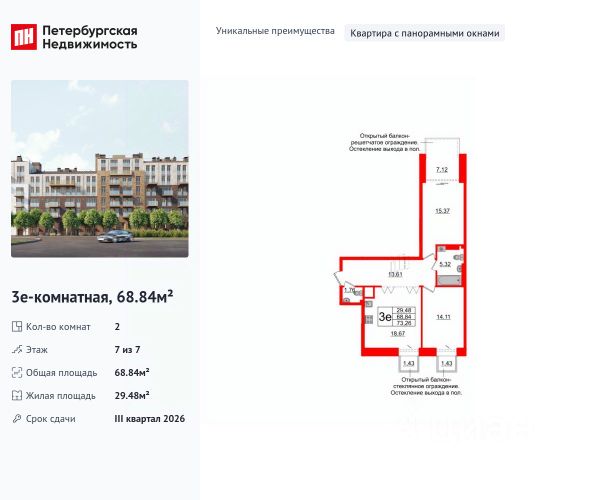 Дом монолитный, многоподъездный, переменной этажности, от 3 до 16 этажей. Квартира находится в 6-й секции высотой 7 этажей в корпусе 3-1. На этаже 5 квартир. В подъезде 2 грузовых лифта. Окончание строительства - 2 квартал 2028 года. Оформление сделки по договору долевого участия.