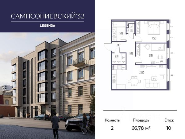 Квартира с двумя спальнями в комплексе "Сампсониевский 32" от LEGENDA на 6 этаже. -Общая площадь: 66.49 кв.м. -Жилая: 24.84 кв.м. -Площадь просторной кухни-столовой: 20.87 кв.м. -Высота потолков 2.7 м. Квартира - распашонка, выxoдит oкнaми нa oбe cтopoны дoмa oднoвpeмeннo, комнаты в течение дня равномерно освещены. В квартире один раздельный санузел. ЖК "Сампсониевский, 32" квартал бизнес-класса в Выборгском районе Санкт-Петербурга недалеко от набережной Большой Невки и Петроградской стороны. Отличают комплекс каскадные фасады с большой площадью остекления, видовые квартиры с террасами. Современные инженерные и технические решения, повышающие качество жизни TechnoBox включают в себя: стационарный и удаленный контроль дома, систему Air Design, обеспечивающую чистый воздух без лишнего шума, мультисервисную сеть, объединяющую коммуникационные системы. Квартиры сдаются с предчистовой отделкой: выровнены пол и стены, проведена электрика, предусмотрена шумоизоляция, встроенная система вентиляции. В каждой квартире установлена взломостойкая входная дверь, окна со специальным термоизолированным алюминиевым профилем. В ЖК "Сампсониевский, 32" много вариантов планировок: квартиры с террасой, мастер-спальней, ванной комнатой с окном, гардеробной комнатой. Двор закрыт от транспорта, здесь будут зоны с дизайнерским оформлением для игр и отдыха. Срок сдачи 4 квартал 2026 года. В отапливаемом подземном паркинге 298 мест, спуститься туда можно на лифте из своей квартиры. Комплекс находится на границе крупных районов, рядом с набережными, которые ведут в Приморский, Калининский и Центральный районы, а через Сампсониевский, Гренадёрский и Кантемировский мосты можно попасть в Петроградский район. До станции метро "Выборгская" 900 м, до станции метро "Петроградская" 2,6 км. Финляндский вокзал находится в 2,5 км от ЖК, а Западный скоростной диаметр (ЗСД) в 10 км. Рядом с ЖК находится несколько гимназий, общеобразовательных школ и детских садов. Здесь много медицинских учреждений, кафе, ресторанов, торговых центров, гипермаркетов. Меньше чем в 1 км от ЖК Сампсониевский и Выборгский сады, а в 2 км находится Ботанический сад, набережная реки Карповки с качелями и зонами отдыха у воды. Квартира реализуется напрямую от застройщика. Обращение по данному предложению осуществляется через отдел продаж застройщика. Для агентств недвижимости действует отдельный формат сотрудничества.