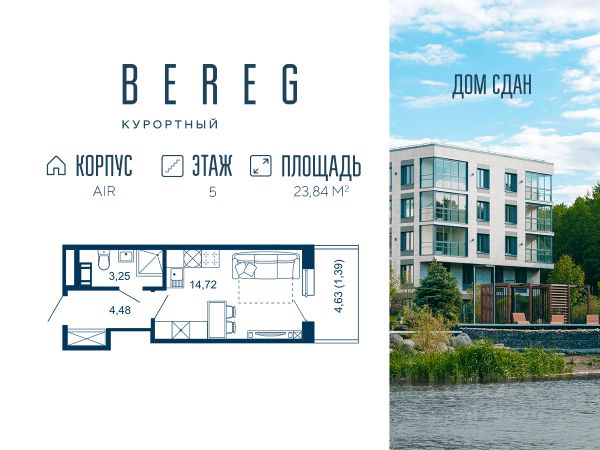 Апартамент 303 площадью 29,02 кв.м. в корпусе Air с видом во двор Дом сдан!!! О проекте: "Bereg. Курортный" первый проект петербургского девелопера ELEMENT (ранее Element Development) в Санкт-Петербурге, который был сдан в мае 2024 года. Малоэтажный проект расположен в тихой части Сестрорецка, в окружении парков "Гагарка" и "Дубки", на берегу живописного канала. В составе комплекса три корпуса: AIR, AQUA и WOOD ("Воздух", "Вода" и "Дерево"), которые включают 715 апартаментов, в том числе юниты с террасами-патио на первом этаже. Комплекс обеспечен всей инфраструктурой для комфортной жизни от детского клуба до собственной спа-зоны с бассейном, сухой сауной и тренажерным залом. "Курортную" атмосферу поддерживают концепция "двор без машин", перголы для отдыха, детские площадки в стиле "эко", променад на набережной с "островками" для медитации, а также зеленое благоустройство от Derevo Park на 28 000 растений. "Bereg. Курортный" ("Берег Курортный") расположен в тихой части Сестрорецка, в окружении заповедного лесопарка "Гагарка". Напротив, проекта любимый петербуржцами парк "Дубки". Всего в 300 метрах от комплекса находится небольшой яхт-клуб, где можно оставить свой катер или небольшую яхту. Преимущества "Bereg. Курортный" ("Берег Курортный"): 3 корпуса; 5 этажей; Концепция "двор без машин"; Закрытая территория с системой контроля доступа; Своя инфраструктура: лобби, бассейн, коворкинг, детский клуб; Собственная благоустроенная набережная; 300 метров до Финского залива; Рядом расположен в лесопарке; Эко-тропа с выходом в лесопарк "Гагарка"; ELEMENT создаёт инновационные жилые и коммерческие объекты в Санкт-Петербурге и Москве, которые устанавливают новые стандарты эффективной жизни в мегаполисах.