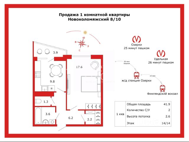 До метро Удельная — 7 минут на транспорте. Остановка общественного транспорта — в 3х минутах ходьбы.