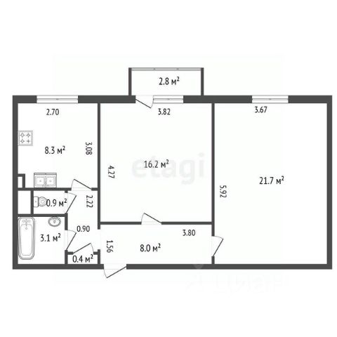 • ✅ Минимальная площадь: 21,1 м²