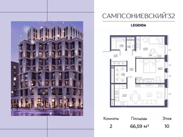 Квартира с двумя спальнями в комплексе "Сампсониевский 32" от LEGENDA на 7 этаже. -Общая площадь: 57.96 кв.м. -Жилая: 20.62 кв.м. -Площадь просторной кухни-столовой: 21.3 кв.м. -Высота потолков 2.7 м. Комнаты изолированные, все окна выходят на одну сторону. В квартире один совмещенный и один раздельный санузел. ЖК "Сампсониевский, 32" квартал бизнес-класса в Выборгском районе Санкт-Петербурга недалеко от набережной Большой Невки и Петроградской стороны. Отличают комплекс каскадные фасады с большой площадью остекления, видовые квартиры с террасами. Современные инженерные и технические решения, повышающие качество жизни TechnoBox включают в себя: стационарный и удаленный контроль дома, систему Air Design, обеспечивающую чистый воздух без лишнего шума, мультисервисную сеть, объединяющую коммуникационные системы. Квартиры сдаются с предчистовой отделкой: выровнены пол и стены, проведена электрика, предусмотрена шумоизоляция, встроенная система вентиляции. В каждой квартире установлена взломостойкая входная дверь, окна со специальным термоизолированным алюминиевым профилем. В ЖК "Сампсониевский, 32" много вариантов планировок: квартиры с террасой, мастер-спальней, ванной комнатой с окном, гардеробной комнатой. Двор закрыт от транспорта, здесь будут зоны с дизайнерским оформлением для игр и отдыха. Срок сдачи 4 квартал 2026 года. В отапливаемом подземном паркинге 298 мест, спуститься туда можно на лифте из своей квартиры. Комплекс находится на границе крупных районов, рядом с набережными, которые ведут в Приморский, Калининский и Центральный районы, а через Сампсониевский, Гренадёрский и Кантемировский мосты можно попасть в Петроградский район. До станции метро "Выборгская" 900 м, до станции метро "Петроградская" 2,6 км. Финляндский вокзал находится в 2,5 км от ЖК, а Западный скоростной диаметр (ЗСД) в 10 км. Рядом с ЖК находится несколько гимназий, общеобразовательных школ и детских садов. Здесь много медицинских учреждений, кафе, ресторанов, торговых центров, гипермаркетов. Меньше чем в 1 км от ЖК Сампсониевский и Выборгский сады, а в 2 км находится Ботанический сад, набережная реки Карповки с качелями и зонами отдыха у воды.