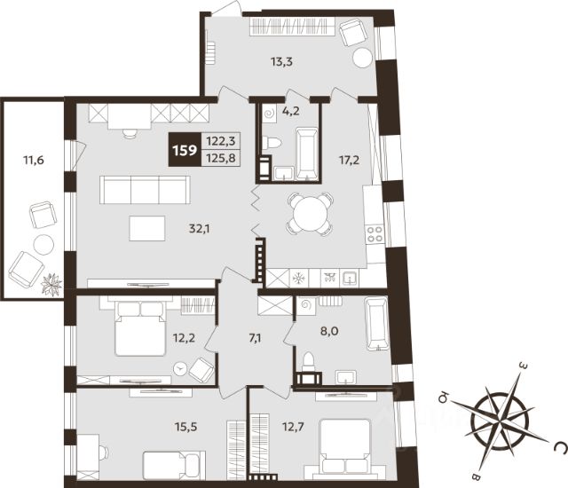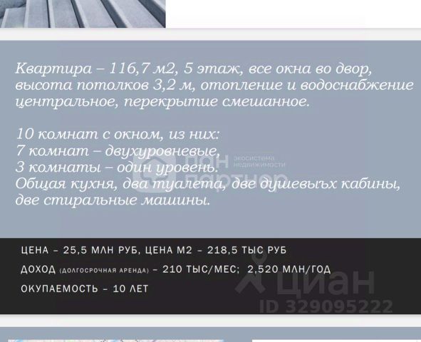 Продаётся 5-комнатная квартира в сданном доме (Корпус 1), срок сдачи: IV-кв. 2025, общей площадью 231.7 кв.м., на 7 этаже. Новый дом построен в историческом центре Петербурга в 3 мин от метро Технологический институт. В нём всего 163 квартиры с просторными планировками (31 до 241 м2). Корпуса высотой 6-9 этажей. На нижних этажах окна квартир выходят в тихие, уютные дворы. С балконов и террас верхних этажей открываются виды на крыши старого города, Исаакиевский и Троице-Измайловский соборы, часовую башню Астрономической обсерватории Главной палаты мер и весов. Доступ на территорию жилого комплекса закрыт для посторонних. Во внутренних дворах разместились игровые площадки для детей разных возрастов, зоны для отдыха и занятий спортом. Входы в парадные находятся со стороны внутренних дворов. На территории и первых этажах ведется видеонаблюдение, организован круглосуточный пост охраны. В центральном лобби размещена консьерж-служба. Под территорией ЖК расположен двухуровневый подземный паркинг на 163 машиноместа. Из паркинга в свою парадную можно подняться на комфортабельном лифте. Также для жителей доступны кладовые помещения на подземных и первом этажах. В сердце Санкт-Петербурга Дом расположен в 1-2 минутах пешком до сада Олимпия и Московского проспекта. В 3 минутах - станция метро Технологический институт. За 9-10 минут от парадной можно дойти до набережной Фонтанки, за 15 минут доехать на авто до Эрмитажа или Мариинского театра. Рядом расположились престижные школы, вузы. В шаговой доступности - питерские рестораны и кафе, фитнес-центры, парки и театры.