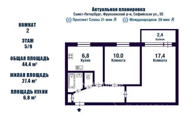 Двушка с изолированной планировкой в 640 метрах от метро! Из вагона метро до подъезда 8-9 мин пешком. Никакого наземного транспорта, который не дождаться. Никакой машины, которая стоит как пол студии. Все члены семьи получат комфорт проживания у метро. Здесь нет ремонта, и это не минус, а открытость: Вы сделаете демонтаж и будете знать, что под обоями и полом. Потому что в квартирах с ремонтом под красивыми обоями и полом может скрываться что угодно: трещины и плесень. Рядом — 2 дет сада (один новый с бассейном, рейтинг 4,7), лицей 387, спортшкола с бассейном и стадионом.