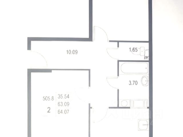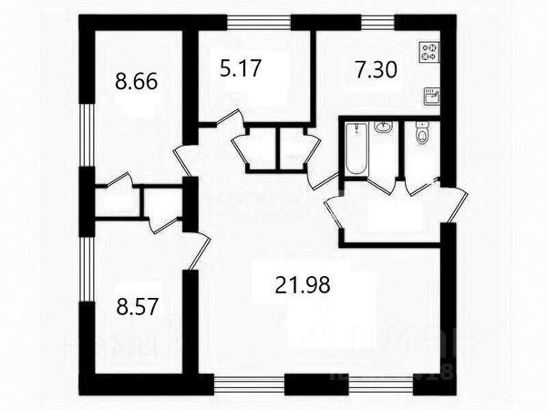 Квартира состоит из 3-х комнат, жилой площадью 42,8 м2, общей площадью 59,6 м2, высота потолков 2,5 м. Санузел раздельный.