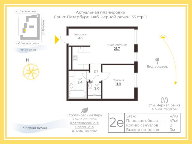 Близость к парку и заливу. В паре шагов — НАБЕРЕЖНАЯ ФИНСКОГО ЗАЛИВА для пробежек и прогулок.