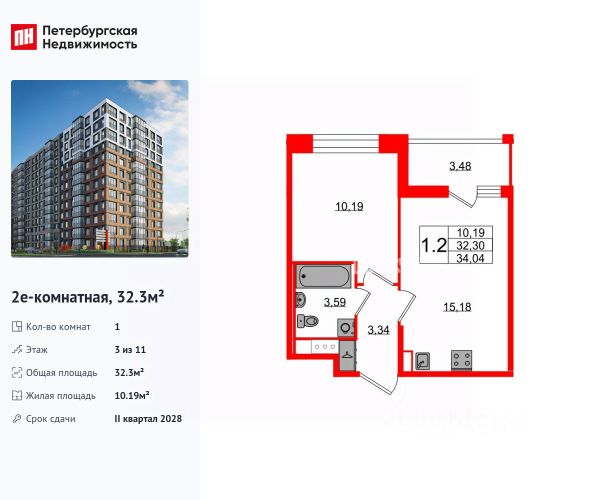Продаётся 1-комнатная квартира в строящемся доме (Корпус 3), срок сдачи: II-кв. 2028, общей площадью 32.86 кв.м., на 13 этаже. Новый жилой комплекс от "РСТИ" у метро Бухарестская.