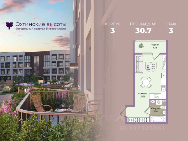 Загородный квартал бизнес-класса "Охтинские высоты" - это ваш новый образ жизни, в котором сбалансированы преимущества проживания на природе в сочетании с городскими сервисами. Квартал расположен рядом со всесезонным курортом Охта Парк, всего в 10 минутах от КАДа. В окружении расположены премиальные конные клубы, теннисные корты, банное пространство "Камыши". Также к услугам жителей легендарный лесной каток, теплый бассейн на открытом воздухе, SPA, рестораны и энотека Охта Парка, куда от квартала будет запущен шаттл только для жителей "Охтинских высот". Вокруг квартал рекреационная лесная зона невероятной красоты, буквально кислородная фабрика 24/7. Ко въезду ведет новая автомобильная дорога, специально построенная для комфорта будущих жителей "Охтинских высот". В первой очереди квартала уже реализуется детский сад на 120 мест. Запроектированы коммерческие помещения под аптеку, супермаркет, пункты выдачи заказов, кофейни и велнесс. Территория квартала безбарьерная. В каждом дворе будет выполнено уникальное благоустройство по авторскому проекту с детскими и спортивными площадками, местами для отдыха и активностей. Концепция озеленения выстроена по принципу "живописный двор круглый год". Любителям активного образа жизни особенно понравятся эксплуатируемые кровли с зонами для йоги и солярия, откуда открывается невероятный вид на зеленый лес, раскинувшийся вокруг квартала. Дворы закрытые, без машин. Безопасность жителей обеспечивает система круглосуточного наблюдения и охрана. Входные группы светопрозрачные, с увеличенными окнами "от колена". Вход с уровня земли. Жители всегда видят, что происходит во дворе и в парадной. МОПы отделами качественными материалами с фактурой дерева и камня. В каждой парадной современные грузопассажирские лифты, отдельно выделены колясочные и велосипедные. Квартал малоэтажный, всего 4 этажа. Высота потолков при этом от 3 м и выше. Квартиры спроектированы таким образом, чтобы закрыть потребности в ежедневном комфортном проживании для семей любого состава. В квартирах: • Живописные патио на первых этажах • Зоны для организации хранения • Мастер-спальни • Комнаты правильной формы • Просторные кухни-гостиные с комфортным зонированием • Гардеробные • Дополнительные санузлы • Увеличенные окна 2х2 м • Система управления комфортом в каждой квартире ("Умный дом") • Подготовка под установку кондиционера • Балконы и лоджии Все квартиры сдаются с отделкой white-box и Системой управления комфортом (умный дом). На выбор можно заказать чистовую отделку, которая представлена в двух вариантах.