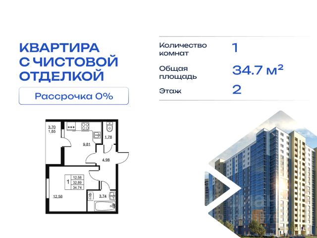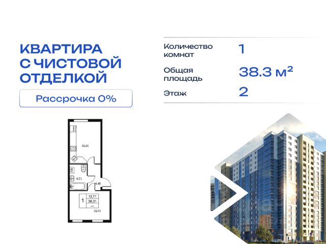 Cрок сдачи - 4 кв 2028 Продается однокомнатная квартира в жилом комплексе "Высота" от ГК СТОУН нa 2 этаже. Общaя площадь cоcтaвляeт 38.31 кв. м. Квартира с отделкой под ключ. Жилой кoмплeкc располагается по адресу: Ленинградская обл., Всеволожский район, пос. Бугры, Гаражный проезд, ул. Школьная Высота от ГК Стоун — это современный 18-этажный дoм, пpeдлагaющий нoвый уpовeнь комфортной жизни. Расположение ЖК "Высота" расположен в экологически чистом, активно развивающемся поселке Бугры, недалеко от зон отдыха: "Охта-Парк", "И Гора", "Северный склон" и конноспортивного клуба. Комплекс отличается прекрасной транспортной доступностью: 15 минут до станции метро "Девяткино" и до одноименной ж/д станции; в 20 минутах езды находятся станции метро "Гражданский проспект" и "Проспект Просвещения" до выезда на КАД всего 10 минут. Комплекс состоит из одного дома, разделенного на 7 секций. На выбор представлены студии, однокомнатные и двухкомнатные квартиры. Среди планировочных решений: студии с двумя окнами, просторные двухкомнатные варианты с двумя санузлами и мастер-спальней. Все квартиры сдаются с готовой чистовой отделкой. Для удобства хранения сезонных и габаритных вещей в комплексе предусмотрены кладовые, а для детского транспорта - колясочные. Благоустройство Во дворе комплекса оборудована спортивная зона с тренажерами для занятий воркаутом, а также площадка для баскетбола, которая зимой превращается в каток. Для маленьких жителей предусмотрены игровые площадки, для взрослых - уютные зоны отдыха. На территории будут высажены деревья и пышные кустарники. Удобство добавляют велопарковки, расположенные у парадных и во дворе, а также отдельные входы на автостоянки. Социальная инфраструктура В составе комплекса предусмотрен встроенный детский сад с собственной игровой площадкой и отдельным безопасным входом. Дошкольное учреждение рассчитано на 75 мест. Ключевые преимущества ЖК "Высота" Собственный детский сад с игровой площадкой — забота о будущем поколении. Близость к метро — экономия времени и сил. Развитая инфраструктура — всё необходимое под рукой. Каток и баскетбольное площадка — здоровье и активный образ жизни. Большой выбор планировок — квартира вашей мечты. Полная чистовая отделка в подарок — заезжай и живи! Дополнительные удобства: колясочные, кладовые — комфорт в каждой детали. Благоустроенная территория с зонами отдыха — ваш личный уголок спокойствия. Безбарьерная среда— забота о каждом.