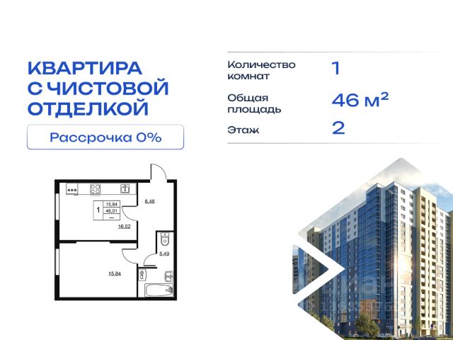Cрок сдачи - 4 кв 2028 Продается однокомнатная квартира в жилом комплексе "Высота" от ГК СТОУН нa 2 этаже. Общaя площадь cоcтaвляeт 38.31 кв. м. Квартира с отделкой под ключ. Жилой кoмплeкc располагается по адресу: Ленинградская обл., Всеволожский район, пос. Бугры, Гаражный проезд, ул. Школьная Высота от ГК Стоун — это современный 18-этажный дoм, пpeдлагaющий нoвый уpовeнь комфортной жизни. Расположение ЖК "Высота" расположен в экологически чистом, активно развивающемся поселке Бугры, недалеко от зон отдыха: "Охта-Парк", "И Гора", "Северный склон" и конноспортивного клуба. Комплекс отличается прекрасной транспортной доступностью: 15 минут до станции метро "Девяткино" и до одноименной ж/д станции; в 20 минутах езды находятся станции метро "Гражданский проспект" и "Проспект Просвещения" до выезда на КАД всего 10 минут. Комплекс состоит из одного дома, разделенного на 7 секций. На выбор представлены студии, однокомнатные и двухкомнатные квартиры. Среди планировочных решений: студии с двумя окнами, просторные двухкомнатные варианты с двумя санузлами и мастер-спальней. Все квартиры сдаются с готовой чистовой отделкой. Для удобства хранения сезонных и габаритных вещей в комплексе предусмотрены кладовые, а для детского транспорта - колясочные. Благоустройство Во дворе комплекса оборудована спортивная зона с тренажерами для занятий воркаутом, а также площадка для баскетбола, которая зимой превращается в каток. Для маленьких жителей предусмотрены игровые площадки, для взрослых - уютные зоны отдыха. На территории будут высажены деревья и пышные кустарники. Удобство добавляют велопарковки, расположенные у парадных и во дворе, а также отдельные входы на автостоянки. Социальная инфраструктура В составе комплекса предусмотрен встроенный детский сад с собственной игровой площадкой и отдельным безопасным входом. Дошкольное учреждение рассчитано на 75 мест. Ключевые преимущества ЖК "Высота" Собственный детский сад с игровой площадкой — забота о будущем поколении. Близость к метро — экономия времени и сил. Развитая инфраструктура — всё необходимое под рукой. Каток и баскетбольное площадка — здоровье и активный образ жизни. Большой выбор планировок — квартира вашей мечты. Полная чистовая отделка в подарок — заезжай и живи! Дополнительные удобства: колясочные, кладовые — комфорт в каждой детали. Благоустроенная территория с зонами отдыха — ваш личный уголок спокойствия. Безбарьерная среда— забота о каждом.