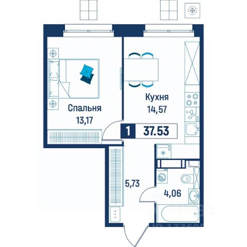 Продаётся 1-комнатная квартира в строящемся доме (Корпус 6), срок сдачи: III-кв. 2029, общей площадью 37.53 кв.м., на 3 этаже.