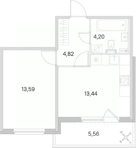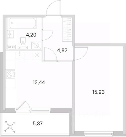 • ✅ Объект наибольшей площади: 44,4 м²