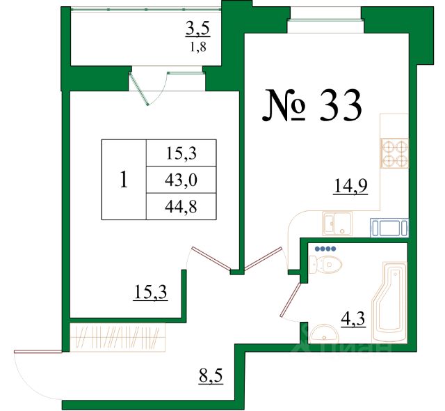 Успей стать владельцем уникальной видовой квартиры, окна которой выходя на зеленый массив. Французские окна придают элегантности квартиры. Большая кухня-гостиная будет объединять всех членов семьи вместе, а три отдельные спальни создадут индивидуальное пространство для каждого.