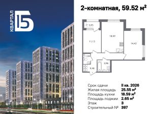 Квартира находится в корпусе P. Дом монолитный, двухподъездный, высотой 14 этажей. На этаже 6 квартир. В подъезде 1 пассажирский и 1 грузовой лифт. Начало строительства - 1 квартал 2026 года. Окончание строительства - 4 квартал 2029 года. Оформление сделки по договору долевого участия.