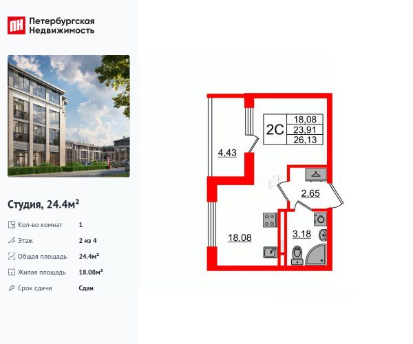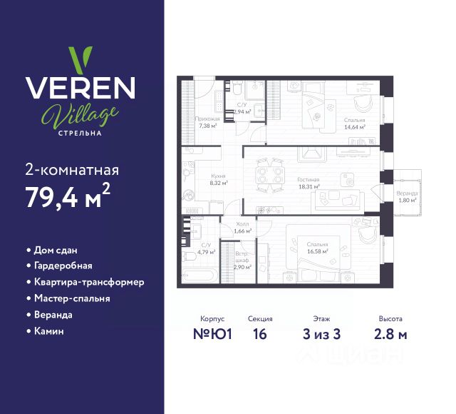 Спешите оформить бронирование по этой цене, предложение ограничено! Стоимость квартиры указана со скидкой, ваша экономия составит 1,149,897 руб. По всем вопросам обращайтесь в офис продаж, наши менеджеры вам все расскажут. 1-комн. квартира-студия в ЖК "VEREN VILLAGE Стрельна" на 1 этаже. Квартира без отделки, после оформления собственности можно делать ремонт. Общая площадь: 28.6 кв.м., площадь гостиной 19.91 кв.м., из которых 5 кв.м. выделено под кухонную зону. Все окна выходят на одну сторону. В квартире один балкон, один совмещенный санузел. Терраса представляет собой роскошную зону отдыха, где вы на свой вкус можете создать атмосферу комфорта и уюта. Высота потолков 2.8 м. Дом монолитный, двухподъездный, высотой 3 этажа. Квартира находится в 1-й секции в корпусе Западный 1. В подъезде 1 грузовой лифт. На сегодняшний день строительство завершено, дом сдан во 2 квартале 2022 года. Оформление сделки по договору купли-продажи. Терраса, квартира-трансформер, уютный метраж. VEREN VILLAGE Стрельна - малоэтажный жилой комплекс бизнес-класса, расположенный в престижном Петродворцовом районе Санкт-Петербурга. Рядом с комплексом находится Константиновский дворец (всего 800 метров), до Финского залива - 1,5 км. Исторической окружение, чистый воздух уютного зеленого района, озеро с благоустроенной набережной на закрытой территории комплекса, собственный спортивно-оздоровительный комплекс с плавательным бассейном - все это делает жизнь в VEREN VILLAGE спокойной и уютной, максимально приближенной к загородной. А до КАД можно добраться за 5 минут. Все дома на территории - трехэтажные, во дворе каждого из них высажены деревья разных пород, в каждом дворе своя. Трёхэтажные дома VEREN VILLAGE стрельна не закрывают от вас солнце и звёзды. Вдоль главной дороги комплекса - светлая сосновая аллея. Центральная площадь выходит на озеро, вдоль которого оборудована прогулочная набережная с велосипедными дорожками. Для отдыха устроены рыбацкий мостик и деревянная палуба-пляж - личный курорт для жителей VEREN VILLAGE стрельна. На каждом этаже находится не более 6 квартир. Архитектурный облик комплекса, разработанный знаменитым бюро "Остоженка" заслуживает особого внимания. При отделке фасадов домов применяется долговечный и эффектный кирпич ручной формовки. Все стильные парадные исполнены по авторскому дизайн-проекту с использованием натуральных материалов. Несмотря на малоэтажность, в парадных предусмотрены лифты. Ландшафтный дизайн разделил все пространство комплекса на тихие прогулочные зоны и места для активного отдыха. Вся территория VEREN VILLAGE закрыта и охраняется. Для автомобилей жильцов предусмотрен подземный паркинг. Аккредитация в банках: ОАО "Альфа-Банк", ПАО "Газпромбанк", АО "Райффайзенбанк", ПАО Банк "ВТБ", "Сбербанк России" и других. #z6fvBl
