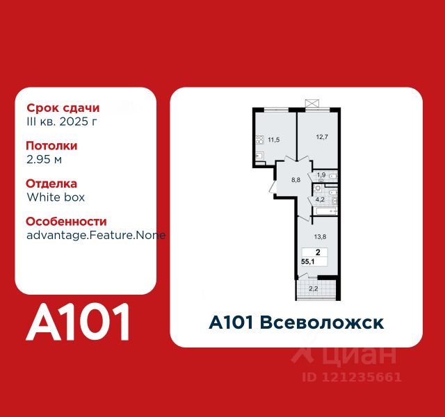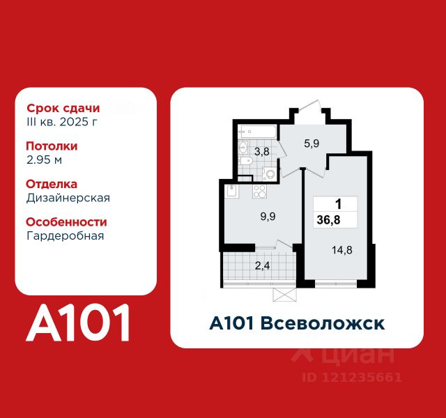 2-комнатная квартира площадью 39.60 в ЖК "А101 Всеволожск" c лоджией на 5 этаже. Квартира white box. Вид из окна во двор. В квартире 1 санузел. Высота потолков 2.8 м. Ключи в 2025 году. Предложения от застройщика на октябрь 2025: - Гибкая рассрочка 20 000 руб/мес. и первым взносом 10%. ОТДЕЛКА Квартира с предчистовой отделкой предполагает: качественную стяжку на полах под финишное покрытие, потолок с обеспыливающей грунтовкой белого цвета, ровные стены с покрытием штукатурка. Выполнены все работы по проведению электрики. На все отделочные работы от застройщика предоставляется гарантия. Если вы хотите дозаказать дизайнерскую отделку, обращайтесь к нашими специалистами. ОСОБЕННОСТИ ПЛАНИРОВКИ ПАРАДНАЯ В каждой парадной предусмотрены места для хранения велосипедов и колясок, гостевой санузел, лапамойка (место для мытья домашних животных или колес велосипедов) и удобная зона ожидания для гостей. ДВОРЫ И ОКРУЖЕНИЕ Просторные дворы свободны от машин и закрыты от посторонних. Большую часть комплекса займут благоустроенные зелёные зоны, теневые сады и городские общественные пространства с развитой тротуарной сетью и велодорожками. Каждый дом оборудован системами видеонаблюдения и контроля доступа. Не хватает средств на покупку кладового помещения? Оформите ипотеку на квартиру и добавьте к ней часть стоимости кладовой. ЗАСТРОЙЩИК ГК "А101" - крупный инвестиционно-строительный холдинг, занимает 6-е место по объему строительства в России (по данным "Единого ресурса застройщиков" на 2023 год). НКР присвоило ГК "А101" кредитный рейтинг A+.ru, подтверждая его надежность и финансовую устойчивость для завершения строительства ЖК. квартира в готовой новостройке в Всеволожске.