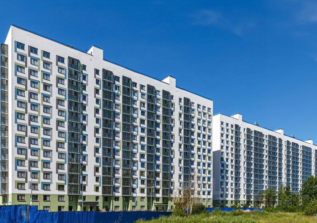 В состав жилого комплекса "Ювента" входит три здания комфорт-класса высотой 6, 9 и 11 этажей с яркими разноцветными фасадами, а также пристроенный корпус детского сада на 80 малышей.