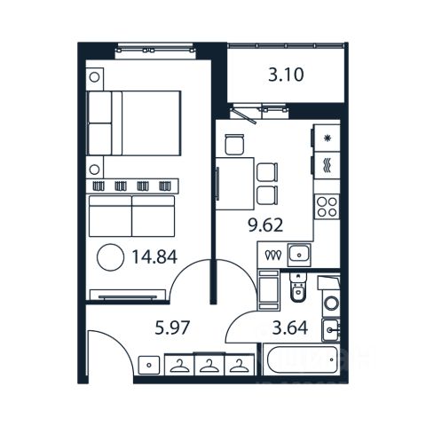 В продаже распашная 2-евро квартира с большой кухней-гостиной в ЖК комфорт-класса "ID Murino II".
