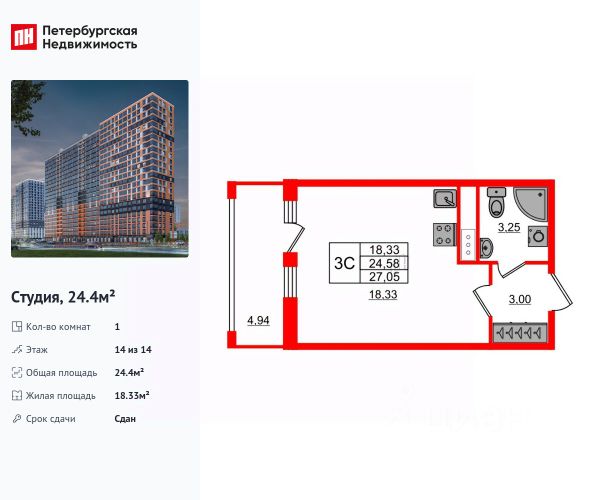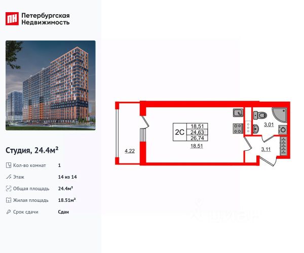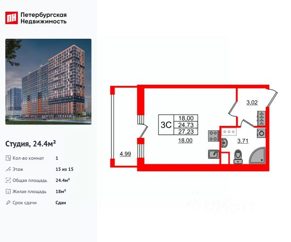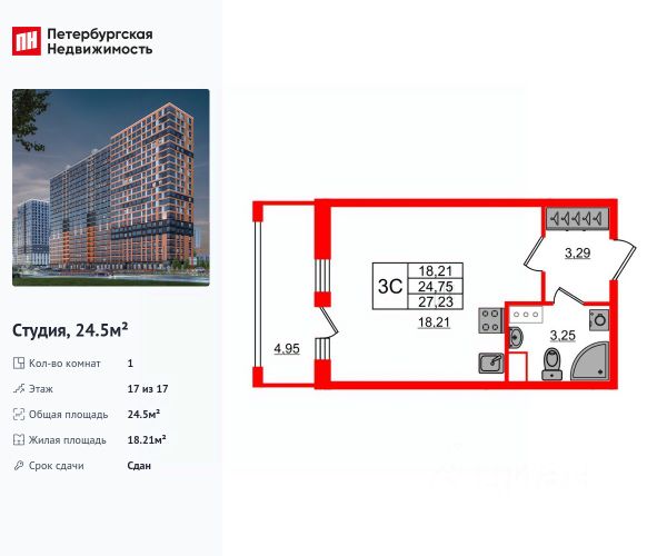 Продается просторная студия от застройщика в жилом комплексе "Город звезд" в новом городе на правом берегу Невы. До метро можно добраться на транспорте всего за 13 минут. Удобная, классическая, функциональная европланировка, просторная прихожая 3.32 м². Общая площадь студии - 24.5 м², жилая 18.09 м², высота потолка 2.77 м. Квартира продается с отделкой "NORD LINE SILVER". Что особенного в ЖК "Город звезд"? • Инновационный Лицей Setl с оригинальной архитектурной концепцией и уникальной образовательной средой • Невский лесопарк под окнами - всегда свежий воздух и полноценный отдых на природе • Четыре тематические площади отдыха с разнообразным благоустройством • Аллея Звёзд - променад протяженностью 5 км с ландшафтным озеленением, зонами отдыха и велодорожкой • Выход на набережную реки Утки, где можно порыбачить или взять напрокат лодку • Единая входная группа с ресепшен и подземный паркинг