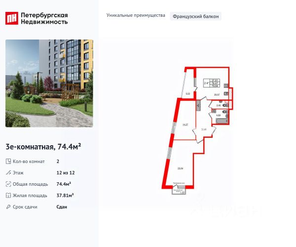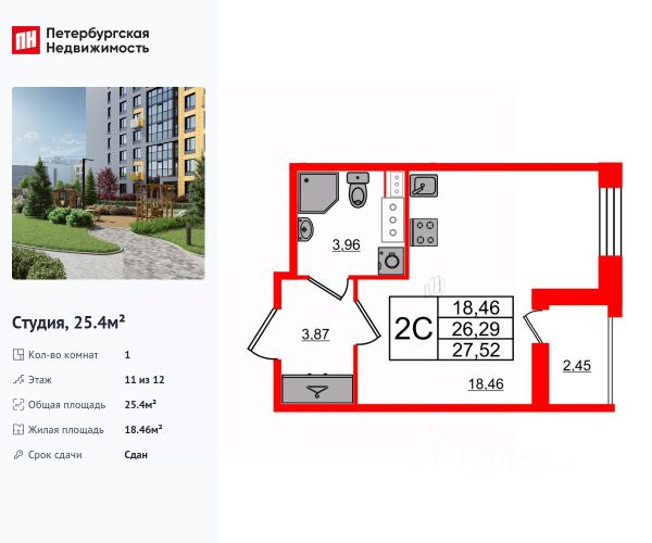 Продается просторная студия от застройщика в жилом комплексе "Прайм Приморский" в динамичном Приморском районе. До метро можно добраться на транспорте всего за 15 минут. Удобная, классическая, функциональная европланировка, просторная прихожая 5.12 м². Общая площадь студии - 27.1 м², жилая 18.45 м², высота потолка 2.77 м. Квартира продается с отделкой "NORD LINE SILVER ВК". Что особенного в ЖК "Прайм Приморский"? • Живописные виды на Шуваловский карьер и лесной массив • "Парящие" французские балконы • Центральная входная группа • Креативное пространство в центре проекта, летняя терраса для отдыха • Приватные лаундж-зоны на крыше домов Продам квартиру с отделкой в готовой новостройке рядом с метро Старая Деревня.