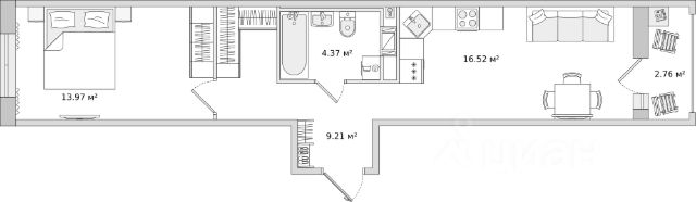 Продается уютная 1-комнатная квартира от застройщика в жилом комплексе "Город звезд" в новом городе на правом берегу Невы. До метро можно добраться на транспорте всего за 13 минут. Удобная, классическая планировка, кухня 10.36 м², просторная прихожая 4.41 м². Общая площадь квартиры - 34.3 м², жилая 16.55 м², высота потолка 2.77 м. Квартира продается с отделкой "NORD LINE WHITE". Что особенного в ЖК "Город звезд"? • Инновационный Лицей Setl с оригинальной архитектурной концепцией и уникальной образовательной средой • Невский лесопарк под окнами - всегда свежий воздух и полноценный отдых на природе • Четыре тематические площади отдыха с разнообразным благоустройством • Аллея Звёзд - променад протяженностью 5 км с ландшафтным озеленением, зонами отдыха и велодорожкой • Выход на набережную реки Утки, где можно порыбачить или взять напрокат лодку • Единая входная группа с ресепшен и подземный паркинг Купить квартиру в готовой новостройке рядом с метро Обухово.