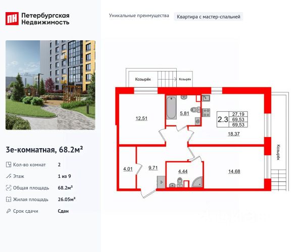 Продается уютная, семейная 3-комнатная квартира от застройщика в жилом комплексе "Прайм Приморский" в динамичном Приморском районе. До метро можно добраться на транспорте всего за 15 минут. Мастер-спальня с собственной ванной комнатой. Самое приватное пространство в вашей квартире. Уникальная, функциональная европланировка, большая кухня-гостиная 19 м², просторная прихожая 12.14 м². Общая площадь квартиры - 81.2 м², жилая 41.94 м², высота потолка 2.77 м. Квартира продается с отделкой "Норд Лайн серый комфорт". Что особенного в ЖК "Прайм Приморский"? • Живописные виды на Шуваловский карьер и лесной массив • "Парящие" французские балконы • Центральная входная группа • Креативное пространство в центре проекта, летняя терраса для отдыха • Приватные лаундж-зоны на крыше домов (3 корпус) квартира в готовой новостройке на улице Парашютная в Санкт-Петербурге.