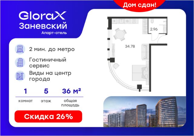 Продается 3-комнатная квартира 243 на 14-м этаже в сданном комплексе бизнес-класса GloraX Заневский. 104,36 м² — пространство, созданное для жизни без компромиссов: 63,40 м² уютных спален, включая зону с гардеробной, 22,88 м² светлой кухни-гостиной и собственная терраса. Дом сдан — ключи в день сделки. Эта квартира — для тех, кто ищет не просто метры, а настоящее ощущение дома над городом: Терраса — ваше личное открытое пространство, где можно встречать рассвет, устраивать ужины под открытым небом или просто наслаждаться тишиной, не покидая пределов квартиры. Редкость в ритме мегаполиса — и центральное преимущество этой планировки. Кухня-гостиная с увеличенными окнами — светлая, воздушная, наполненная естественным светом с утра до вечера. Это сердце дома, где легко собрать близких, устроить праздник или провести тихий вечер вдвоём. Гардеробная — не просто удобство, а элемент роскоши повседневной жизни. Здесь всё на своём месте, а утро начинается без спешки и суеты. Два санузла обеспечивают комфорт и личное пространство для каждого — будь то семья, гости или новые привычки повседневности. Отделка White Box даёт полную свободу воплотить интерьер, отражающий ваш вкус и образ жизни. А интеллектуальная система "Умный дом", IP-видеонаблюдение и бесплатный Wi-Fi на территории заботятся о безопасности и удобстве ненавязчиво, но надёжно. GloraX Заневский — для тех, кто выбирает жизнь без компромиссов. Всего две минуты до метро "Ладожская", пять парков в шаговой доступности, закрытый двор с разновозрастной детской зоной, комьюнити-центр и отапливаемый паркинг с лифтом прямо с этажа. Вокруг — всё, что делает город живым: рестораны, ТЦ, кинотеатры и прогулочные бульвары. Цена указана при 100% оплате или стандартной ипотеке. Подробности — в отделе продаж. квартира в готовой новостройке на проспекте Энергетиков в Санкт-Петербурге.