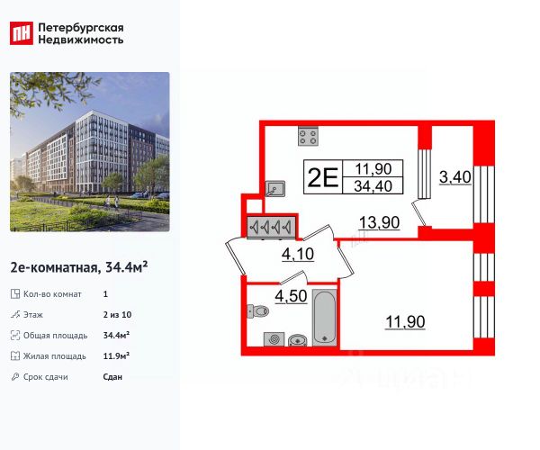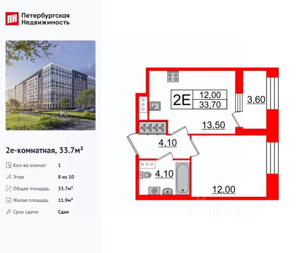 Уникальная однокомнатная квартира в квартальной застройке, рядом с метро Проспект Просвещения и Гражданский проспект, удобный выезд на КАД.