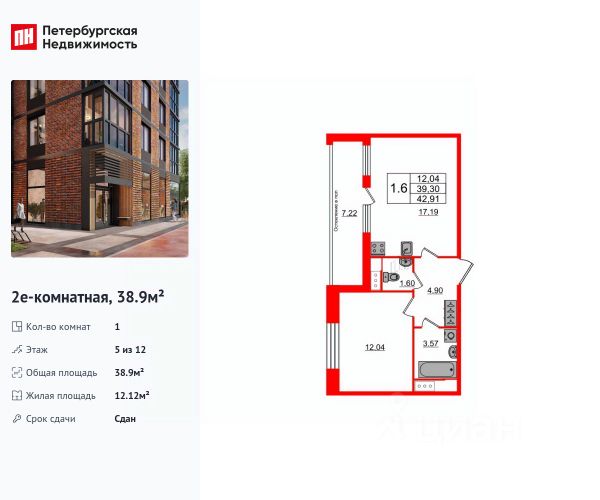 Продается просторная 1-комнатная квартира от застройщика в жилом комплексе "Титул в Московском" в престижном Московском районе. До метро можно добраться пешком всего за 25 минут. Удобная, классическая, функциональная европланировка, большая кухня-гостиная 17.56 м², просторная прихожая 4.57 м². Общая площадь квартиры - 40.97 м², жилая 13.39 м², высота потолка 2.77 м. Квартира продается с отделкой "NORD LINE WHITE ВК NEW". Что особенного в ЖК "Титул в Московском"? • Престижный Московский район • Авторская архитектурная концепция • 2 центральные входные группы с ресепшн и лаундж-зонами • Кленовая аллея с арт-стеллой, цветочная аллея и сад трав • Уютные дворы-патио, площадки SetlKids и SetlSport • Инновационный Лицей Setl с оригинальной архитектурной концепцией и уникальной образовательной средой