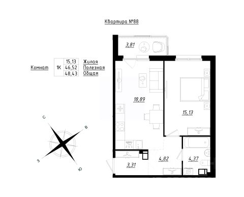 Предлагается к продаже 3 комнатная квартира 88,84 кв.м. с террасой.